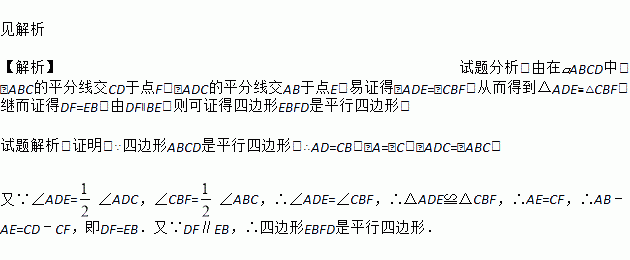 如图,在□ABCD中,∠ADC的平分线交AB于点E,∠ABC的平分线交CD于点F,求证:四边形EBFD是平行四边形.
