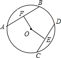 已知在⊙O中,AB、CD分别是弦,OE⊥AB,OF⊥CD,垂足分别是点E、F,要使得OE=OF,可以添加的条件是________.