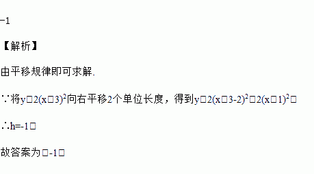 抛物线y=2(x+3)2向右平移2个单位长度后,得到抛物线y=2(x-h)2,则h=______.