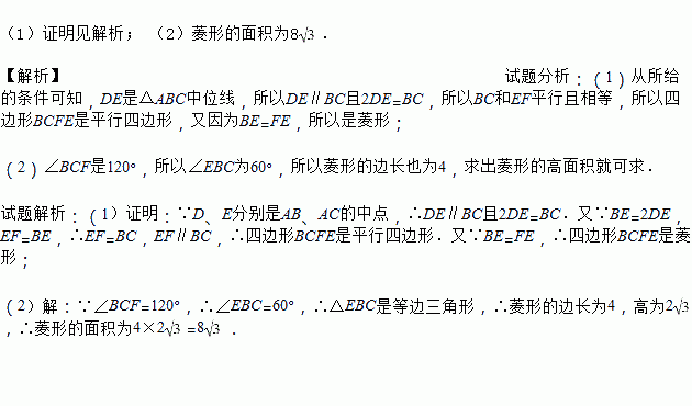 (2)若CE=4,∠BCF=120°,求菱形BCFE的面积.