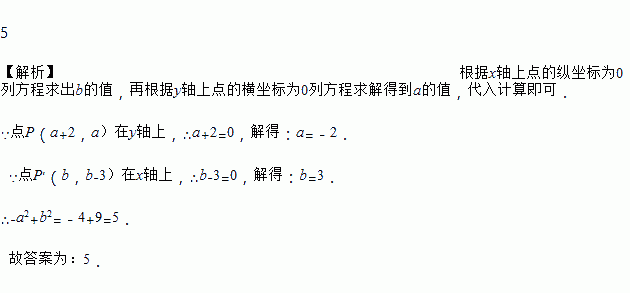 若点P(a+2,a)在y轴上,点P′(b,b-3)在x轴上,则 -a2+b2=______.