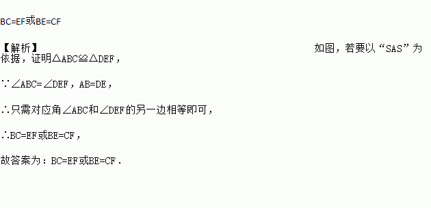 如图:已知∠ABC=∠DEF,AB=DE,要说明△ABC≌△DEF若“SAS”为依据,还要添加的条件为_____.