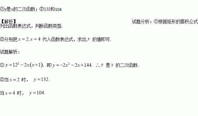 一个正方形的边长是12 cm,若从中挖去一个长为2x cm,宽为(x+1)cm的小长方形,剩余部分的面积为y cm2.