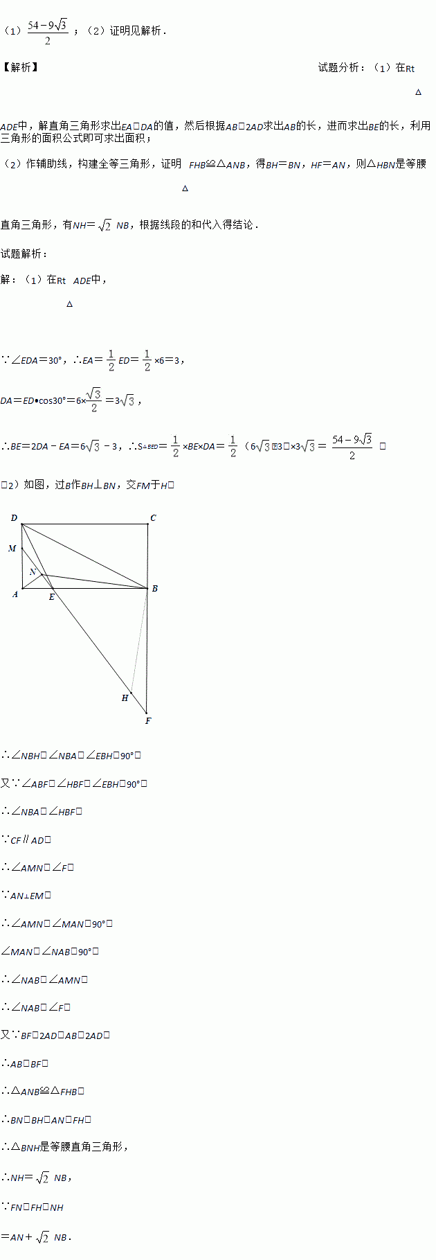 (2)延长CB至点F使得BF=2AD,连接FE并延长交AD于点M,过点A作AN⊥EM于点N,连接BN,求证:FN=AN+