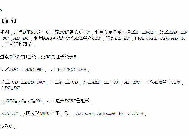 如图,四边形中,,,,若四边形面积为,则的长为( )