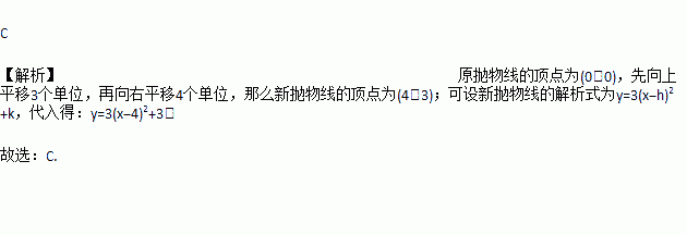将抛物线的图象先向上平移3个单位,再向右平移4个单位所得的解析式为( )