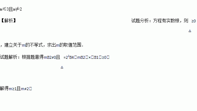 关于x的一元二次方程(m-2)x2+2x+1=0有实数根,求m的取值范围