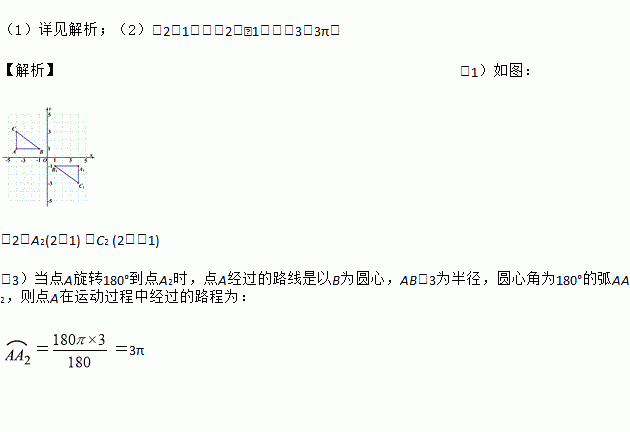 (3)求点A绕点B旋转180°到点A2时,点A在运动过程中经过的路程.