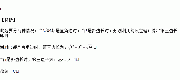 已知直角三角形的两条边长分别是3和5,那么这个三角形的第三条边的长为( )