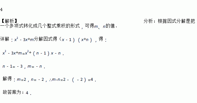 如果把多项式分解因式得,那么m—n=_________.