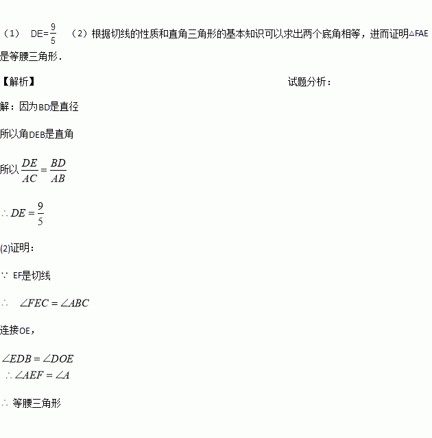 (2)过点E作半圆O的切线,当切线与AC边相交时,设交点为F.求证:△FAE是等腰三角形.