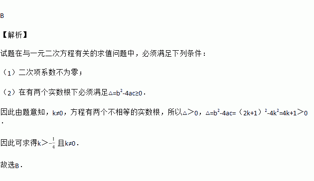 如果关于x的一元二次方程k2x2-(2k+1)x+1=0有两个不相等的实数根,那么k的取值范围是( )