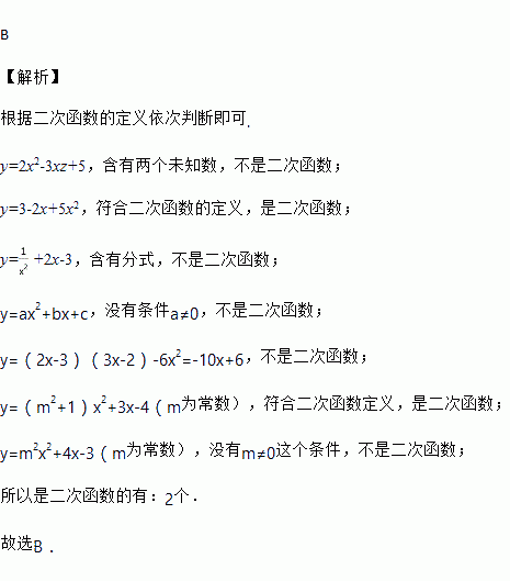 下列各式:①y=2x2-3xz+5;②y=3-2x+5x2;③y=