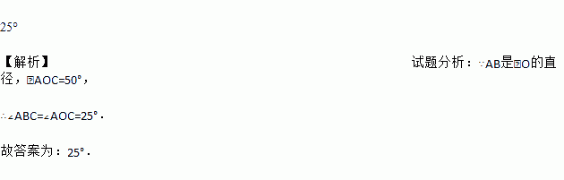 如图,AB是⊙O的直径,点C为⊙O上一点,∠AOC=50°,则∠ABC= _____.