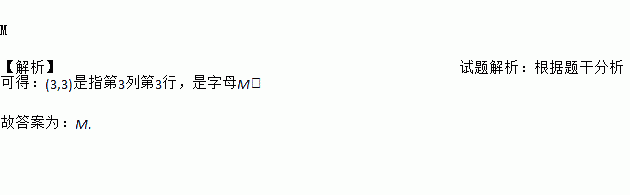 如图所示,进行“找宝”游戏,如果宝藏藏在(3,3)字母牌的下 面, 那么应该在字母______下寻找。