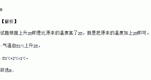 A. -1℃ B. 1℃ C. 2℃ D. 3℃