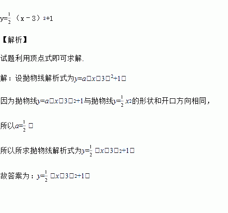 x2的形状和开口方向相同,顶点为(3,1)的二次函数解析式为______.