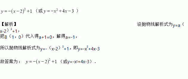 (或) 【解析】设抛物线解析式为y=a(x-2)2+1, 把B(1,0)代入得a+1=0,解得a=-1, 所以抛物线解析式为y=-(x-2)2+1,即y=-x2+4x-3 故答案为: (或y=-x2+4x-3).
