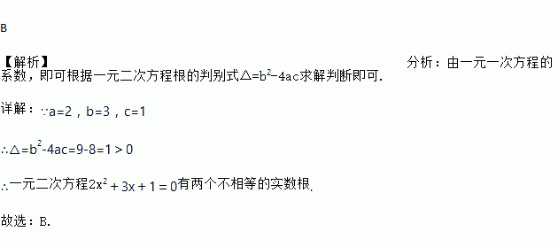 一元二次方程2x2+3x+1=0的根的情况是( )