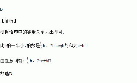 列等式表示:比b的一半小7的数等于a与b的和.( )