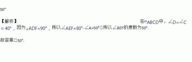 如图,在?ABCD中,∠C=40°,过点D作AD的垂线,交AB于点E,交CB的延长线于点F,则∠BEF的度数为________.