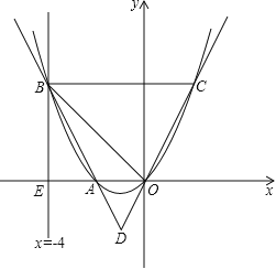 如图,直线x=﹣4与x轴交于点E,一开口向上的抛物线过原点交线段OE于点A,交直线x=﹣4于点B,过B且平行于x轴的直线与抛物线交于点C,直线OC交直线AB于D,且AD:BD=1:3.