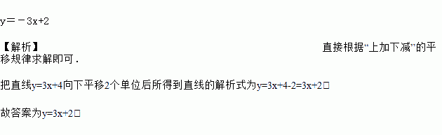 把直线y=-3x+4向下平移2个单位,得到的直线解析式是__________