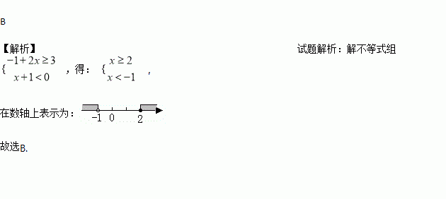 不等式组的解集表示在数轴上正确的是 ( )