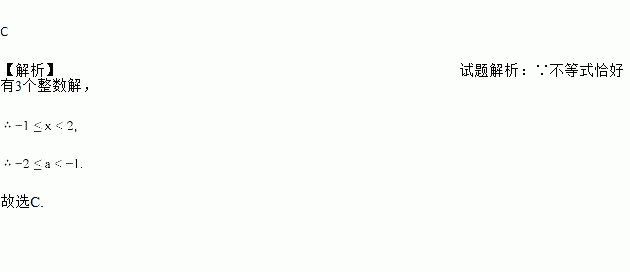 如果不等式组恰有3个整数解,则a的取值范围是( )