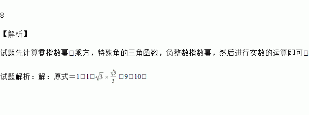 计算:(1﹣)0﹣12018﹣tan30°+()﹣2