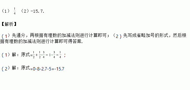(1). (2). 0-(+8)+(-2.7)-(+5)