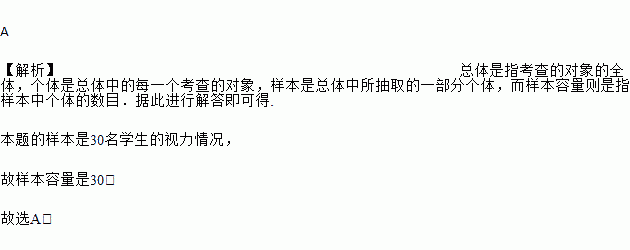 A. 30 B. 800 C. 800名学生的视力 D. 30名学生的视力