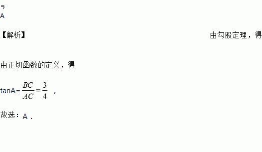 在Rt△ABC中,∠C=90°,AB=5,BC=3,则tanA的值是( )
