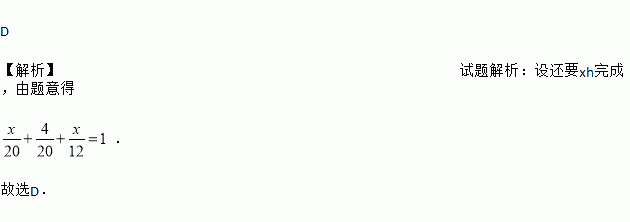 一件工作,甲单独做20h完成,乙单独做12h完成,现甲单独做4h后,乙加入和甲一起做,还要几小时完成?若设还要x h完成,则依题意可列方程为( )