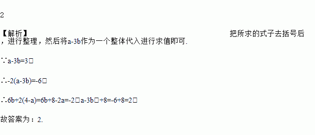 已知a-3b=3,则6b+2(4-a)的值是___.