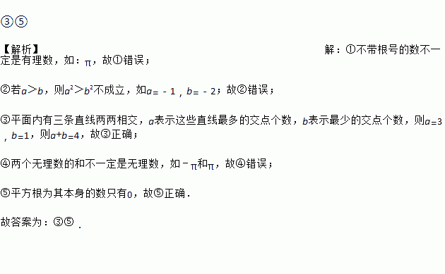 ;④两个无理数的和一定是无理数;⑤平方根为其本身的数只有