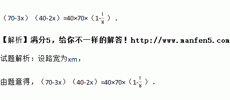 如图,在长70m,宽40m的长方形花园中,欲修宽度相等的观赏路(如阴影部分所示),要使观赏路面积占总面积的,则路宽x应满足的方程是 .