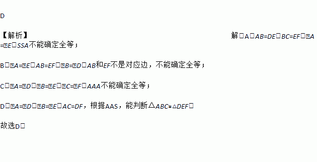 D. ∠A=∠D,∠B=∠E,AC=DF