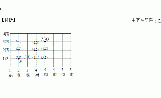 如图是某城市的部分街道平面图的示意图,某人从P地出发到Q地,他的路径表示错误的是( )
