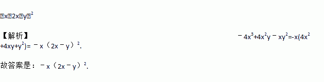 分解因式:﹣4x3+4x2y﹣xy2=________.
