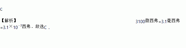 C 【解析】3100微西弗=3.1毫西弗=3.1×10﹣3西弗.故选C.