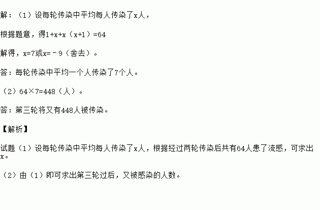 有一人患了流感,经过两轮传染后共有64人患了流感.