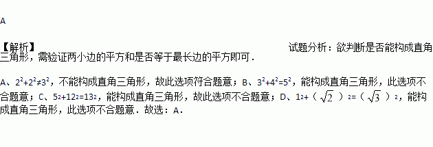 A. 1, , B. 3,4,5 C. 5,12,13 D. 2,2,3