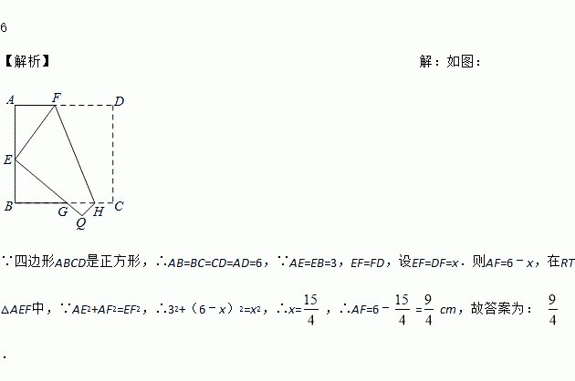 如图,将边长为16cm的正方形纸片ABCD折叠,使点D落在AB边中点E处,点C落在点Q处,折痕为FH,则线段AF的长是_____cm.