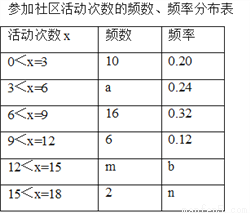 射阳县实验初中为了解全校学生上学期参加社区活动的情况,学校随机调查了本校50名学生参加社区活动的次数,并将调查所得的数据整理如下: