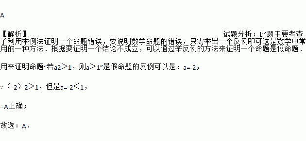 下列选项中,可以用来证明命题“若a2>1,则a>1”是假命题的反例是( )