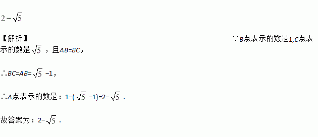 数轴上有A、B、C三个点,B点表示的数是1,C点表示的数是,且AB=BC,则A点表示的数是____________.