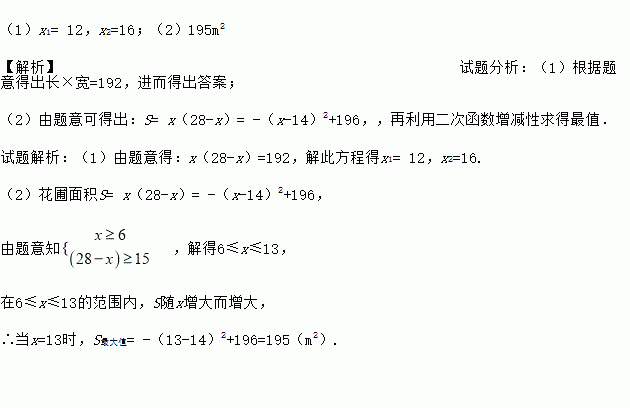在美化校园的活动中,某综合实践小组的同学借如图所示的直角墙角(两边足够长),用28m长的篱笆围成一个矩形的花圃ABCD(篱笆只围AB、BC两边)设AB=xm.
