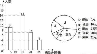 某校八年级全体同学参加了某项捐款活动,随机抽查了部分同学捐款的情况统计如图所示.