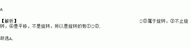 在下列现象中:①时针转动,②电风扇叶片的转动,③转呼啦圈,④传送带上的电视机,其中是旋转的有( )